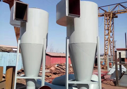 除塵器。一次風由下部風管導人,導人管是一圓管,內(nèi)裝若于導向葉片,中間插入筆狀穩(wěn)流體。穩(wěn)流體的作用是避免粉塵進入設(shè)備的中心軸,并使旋轉(zhuǎn)的氣流產(chǎn)生一穩(wěn)定的旋流源。當氣體以 25~35m/s的速度流經(jīng)導向葉片時,被強制旋轉(zhuǎn)流入分離室。二次風由夾套分配后,以50~80m/s的高速從分離室壁上均勻分布的若干噴嘴(或由頂廠導向葉片)切向噴入分離室內(nèi)并旋轉(zhuǎn)向下流動。兩股氣流旋轉(zhuǎn)方向一致,組成一個旋流源,并加強了中心氣流的旋轉(zhuǎn)速度。增強了離心力,使粉塵向墨面沉降,以螺旋狀的粉塵環(huán)隨二次風帶入灰斗內(nèi)分離出來。